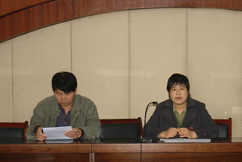 公司董事兼總經(jīng)理范國臣(左一),監(jiān)事會(huì)主席田金花(左二)