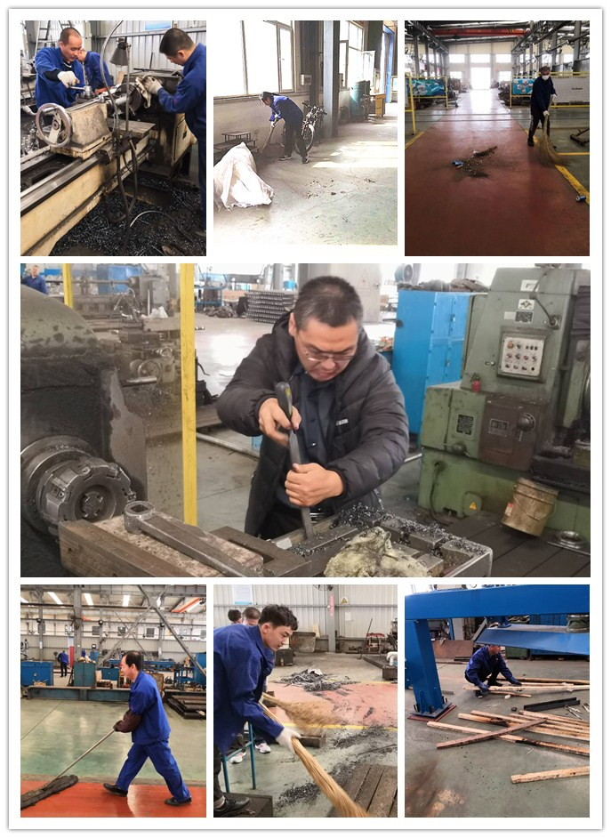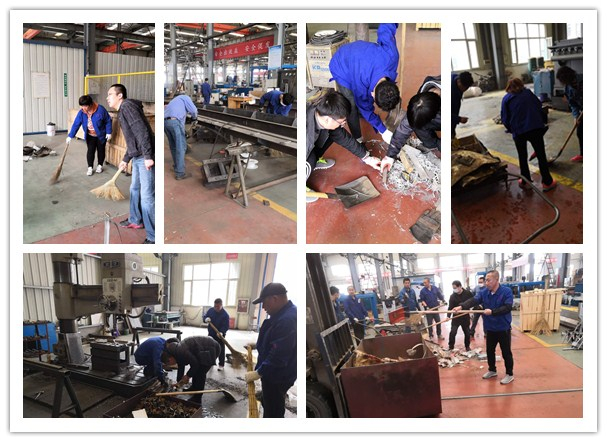 玻機公司四十余名干部職工,利用掃把、鐵鍬、簸箕、拖布、垃圾箱等工具,有組織地在車間開展掃除活動。活動現(xiàn)場,大家爭先恐后,有的揮動鐵鍬,清理機床下面的鐵屑;有的手拿掃帚,清掃車間過道的塵土;有的徒手挑揀垃圾中不銹鋼廢料,有的清理機床,規(guī)整原材料、半成品;有的當運輸工,將垃圾集中到垃圾箱內(nèi)拉走。勞動現(xiàn)場熱火朝天,個個精神抖擻,干勁十足。