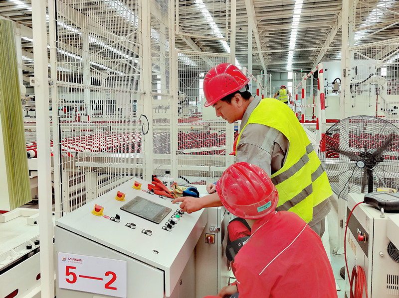 隨著冷端電氣控制調試進入最后階段,張部長帶領安裝人員高效完成了在線檢測、切割、堆垛、噴粉及深加工連線等系統(tǒng)的信號調試工作。目前,他正帶領團隊馬不停蹄地投入到七窯的調試工作中,為即將到來的出玻璃生產做最后的準備工作。張部長這種親力親為、精益求精的工作作風,為項目的順利推進提供了堅實保障。