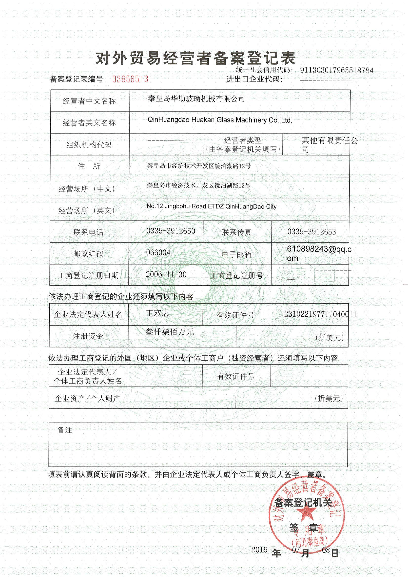 對外貿(mào)易經(jīng)營者備案登記表